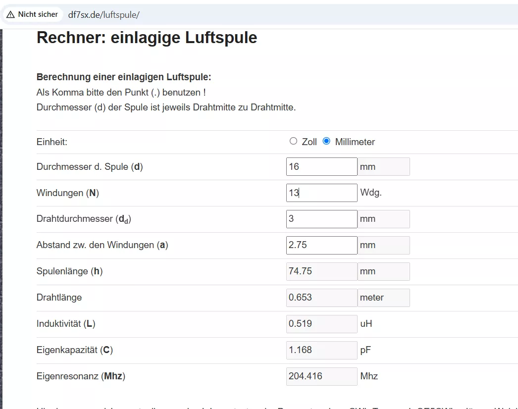 O.K. danke Jürgen. Ich hab mir die Antenne inzwischen bestellt, darum konnte ich die Spule genau abmessen.